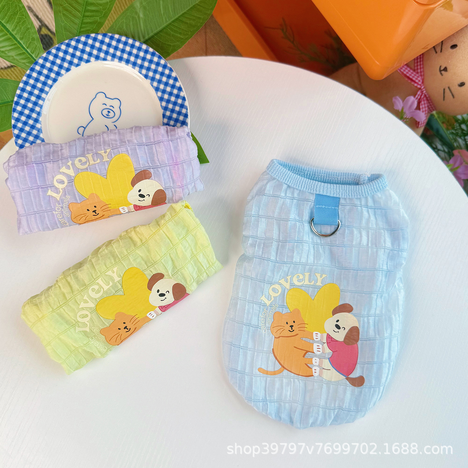 Musim semi dan musim panas baru Jepang dan Korea ins gaya anjing peliharaan anjing kucing pakaian teddy bear VIP traksi rompi wafel