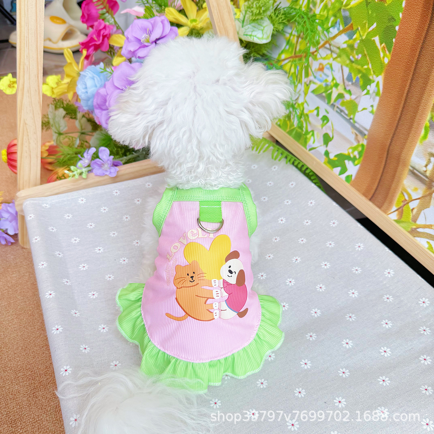 Pakaian Hewan Peliharaan Rok Gantung Bunga Musim Semi dan Musim Panas Gaya Putri Pakaian Anjing Kucing Bernapas Model Tipis Bichon Grosir Lintas Batas