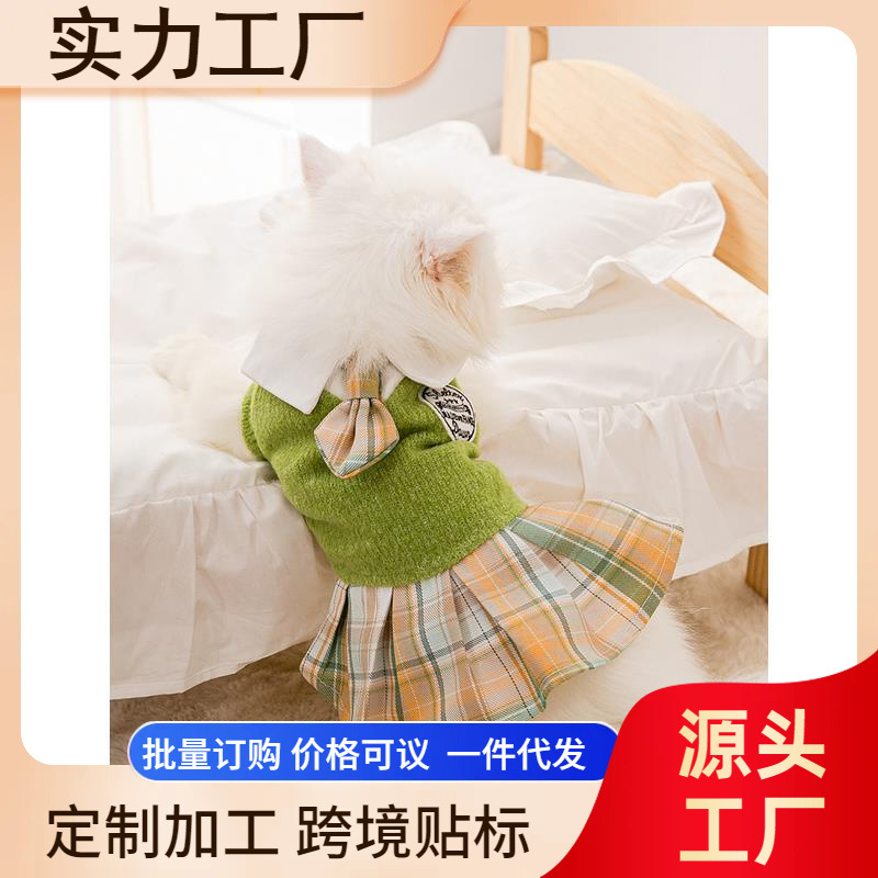 Gaun musim panas kucing anjing pakaian musim semi Bixiong Bomei anjing kecil gaya kuliah musim semi dan musim gugur