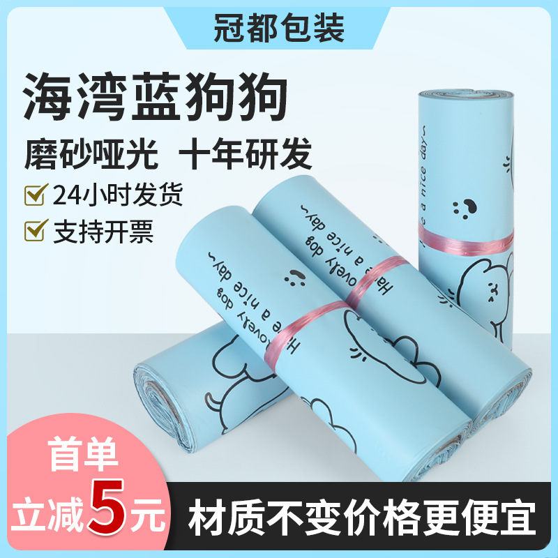 Tas Pengemasan Pakaian Pola Cetak Matte Matte Bahan Baru Tas Pengiriman Cepat Anjing Karton Biru