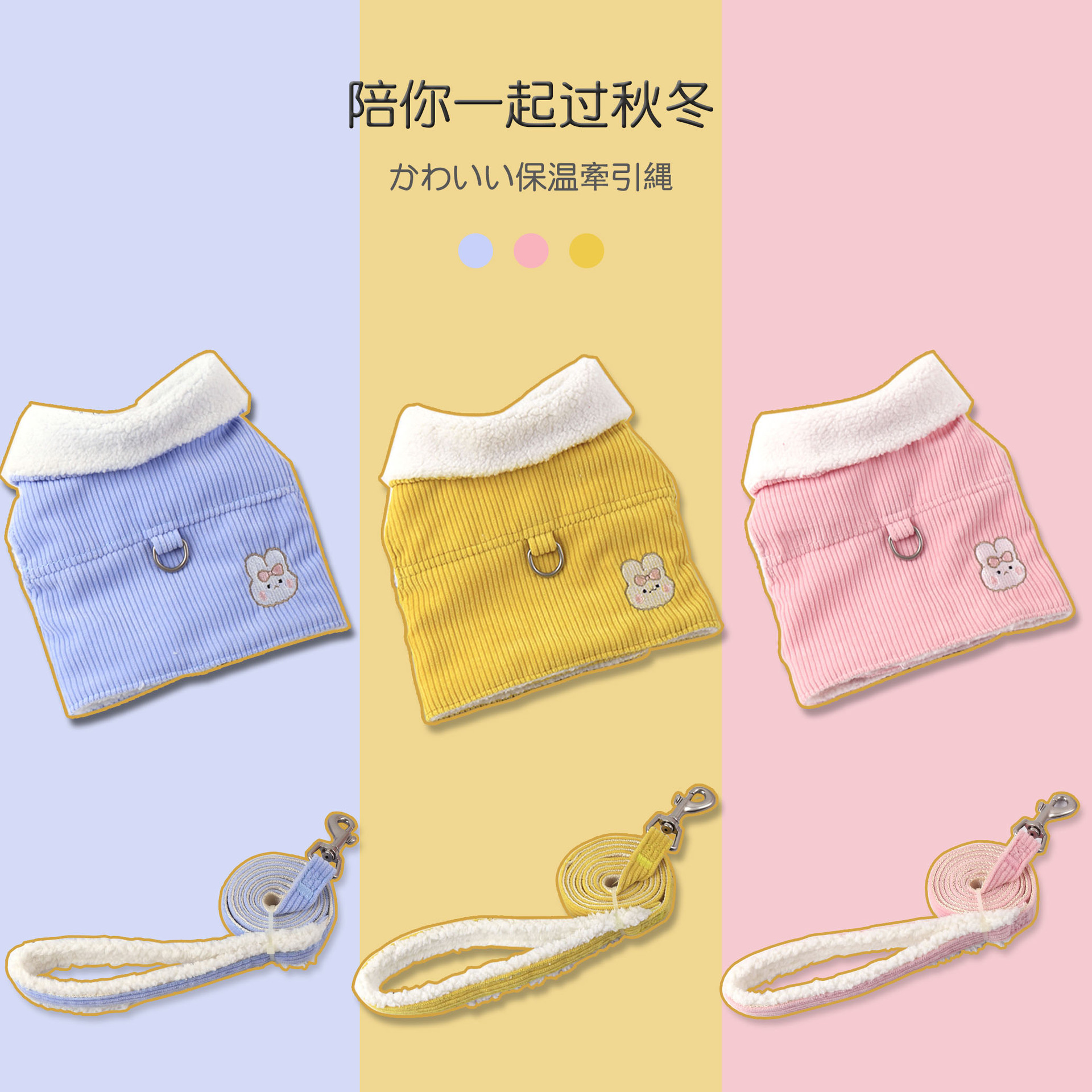 Baju anjing anjing musim dingin bulu domba Teddy berjajar anjing kecil Bichon anjing kucing anak anjing tali anjing