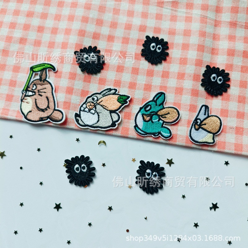 Stiker kain tambalan bordir Totoro kartun lucu tas baju dekorasi DIY klasik Miyazaki kartun merekat sendiri