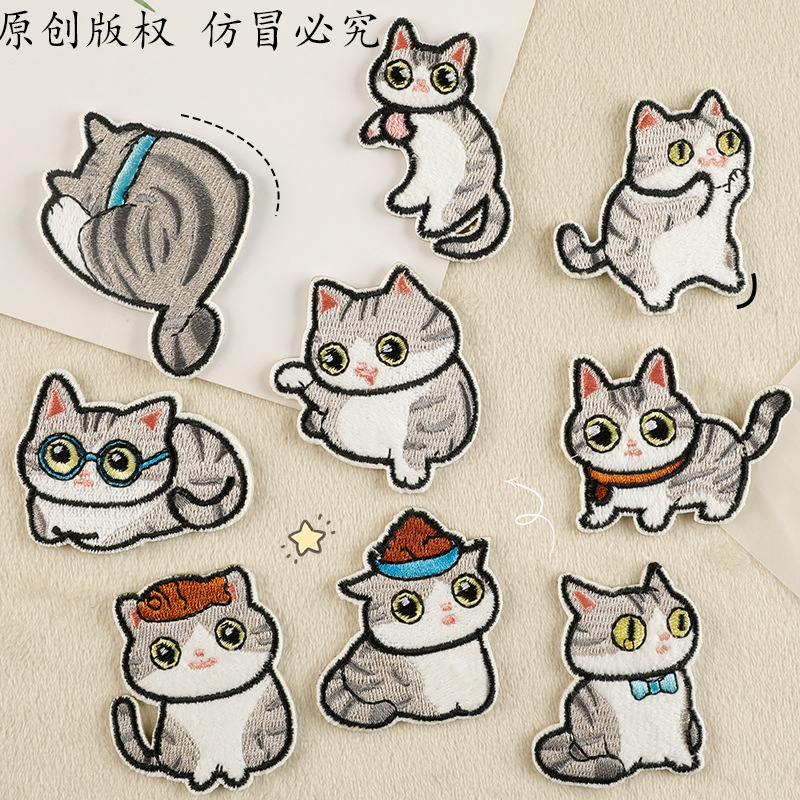 Kartun Lucu Lucu Kucing Bordir Perekat Sendiri Qianfeng Original Produk Asli Rambut Lurus Aksesoris Pakaian Stiker Kain DIY