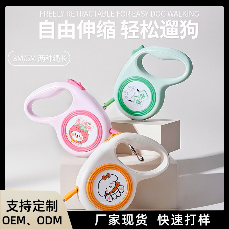 Tali Traksi Teleskopik Model Baru Tali Traksi Anjing Pola Ilustrasi Lucu Tali Teleskopik Tali Anjing Lintas Batas Otomatis Grosir
