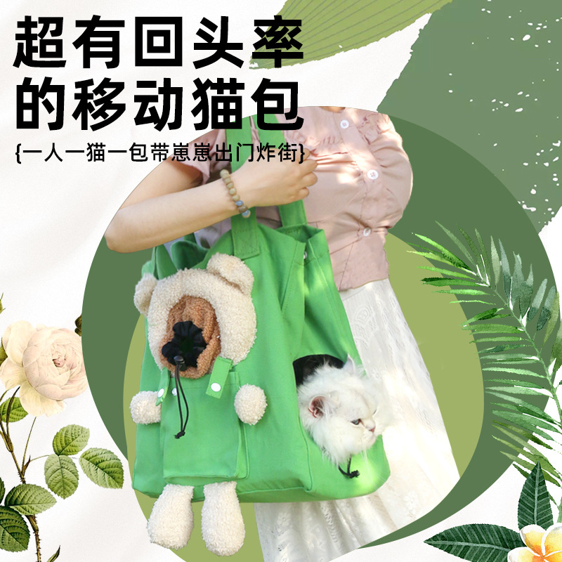 Tas Kucing Portabel untuk Keluar Hijau Portabel Tas Kucing Kepala Terbuka Ringan Kain Kanvas Musim Semi Portabel Musim Panas Anjing Selempang Lucu