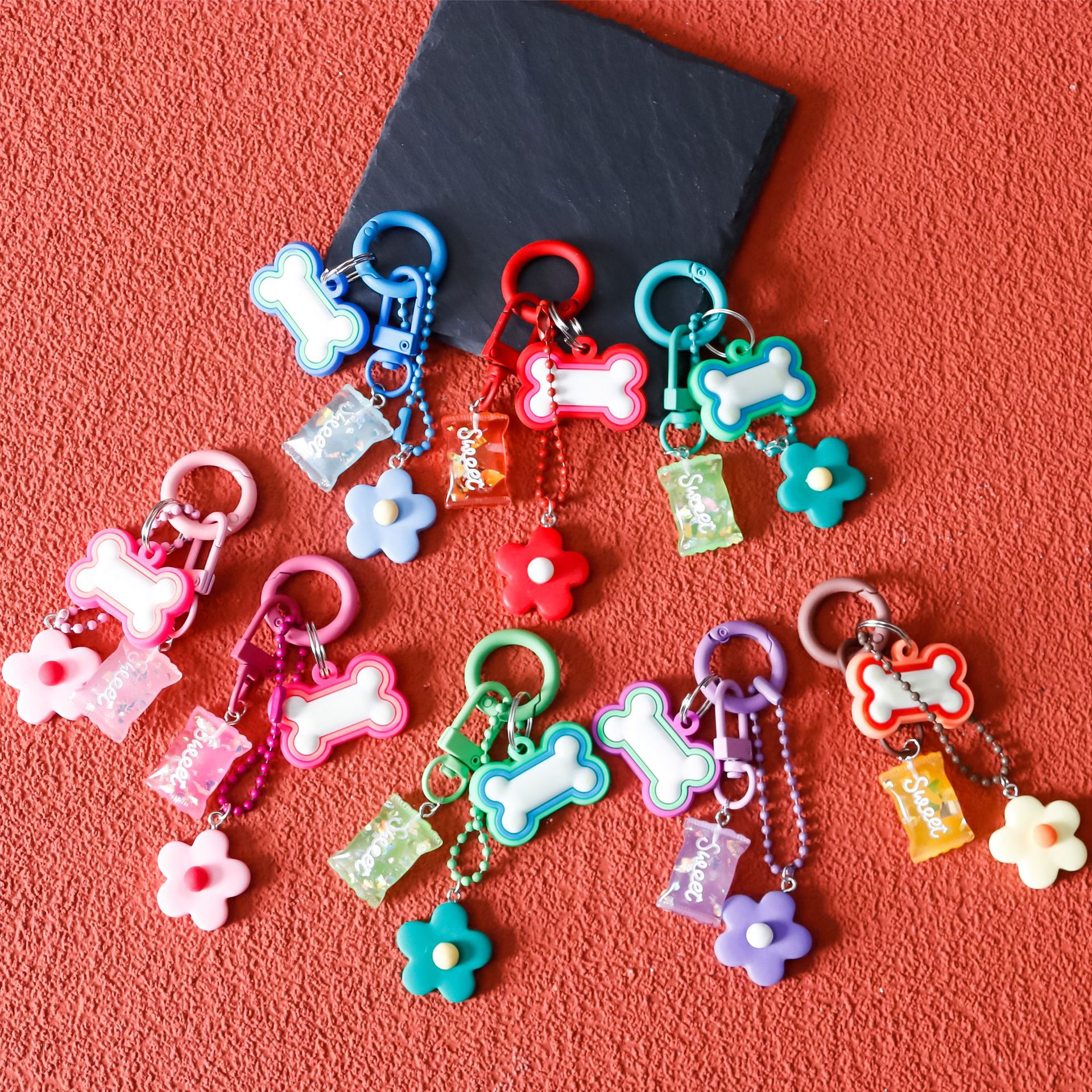 Jepang lucu gadis hati ins bunga warna-warni permen anjing tag liontin gantungan kunci ransel dompet koin perhiasan