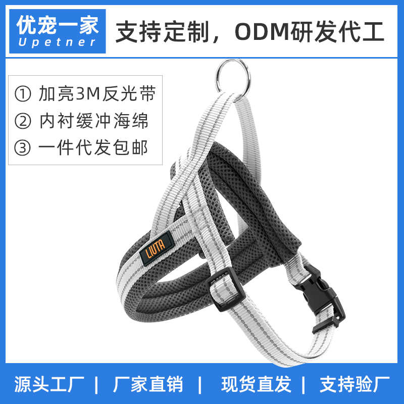 Rompi grosir tali dada hewan peliharaan, setelan tali traksi dada hewan peliharaan dapat disesuaikan, set enam potong