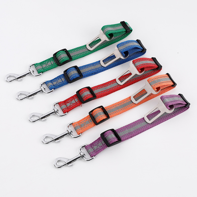 Sabuk pengaman hewan peliharaan mobil, tali anjing kecil reflektif tarik sabuk traksi tahan ledakan meninju tempat duduk kartu tetap mobil