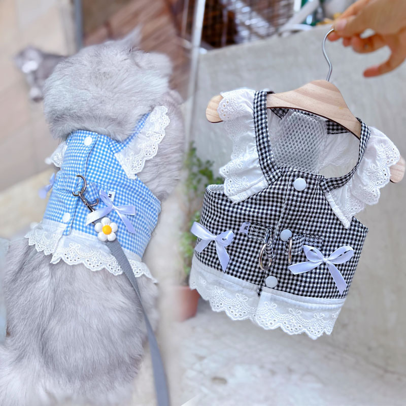 Pakaian Gaya Pedesaan Selebriti Internet Hewan Peliharaan Kucing Anjing Traksi Rok Kecil Pakaian Kotak-Kotak Dada Punggung Perdagangan Luar Negeri Amazon