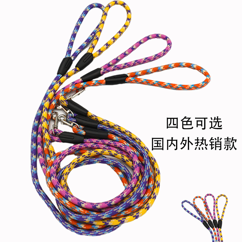 Tali penarik anjing hewan peliharaan multifungsi tali bulat nilon berwarna universal