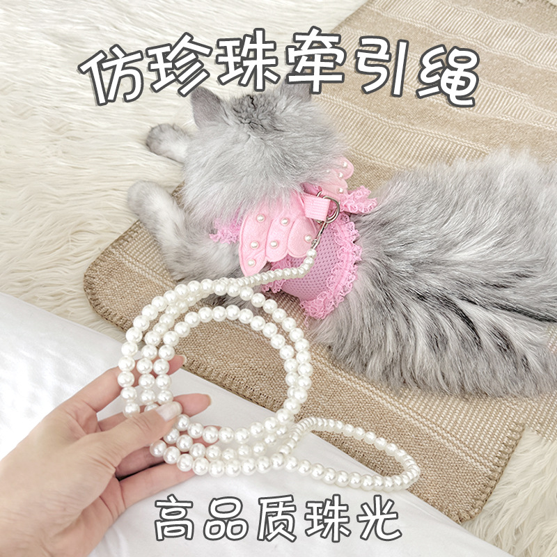 Perlengkapan Hewan Peliharaan Tali Penarik Mutiara Imitasi Rantai Anjing Kecil dan Menengah Tali Penarik Mutiara Imitasi Anjing Kecil Teddy