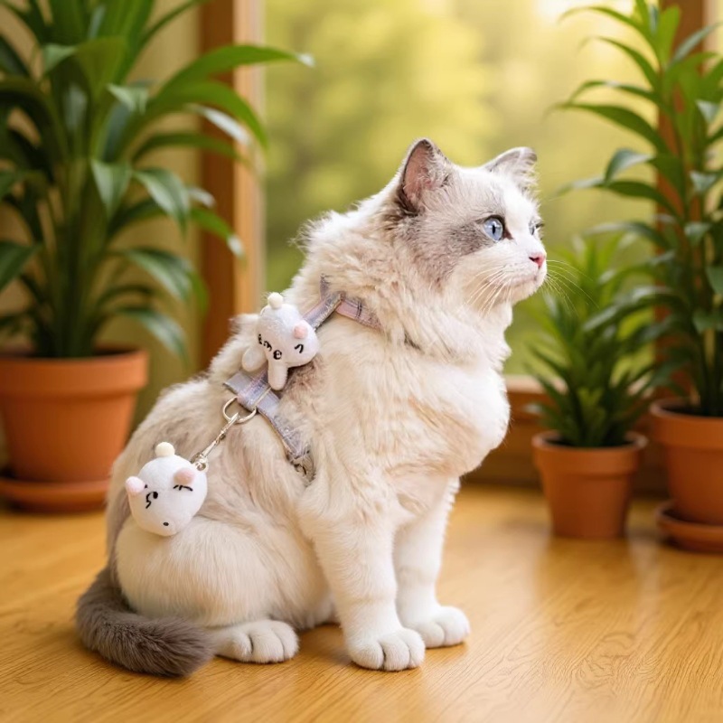 Tali kekang kucing anjing kecil kreatif lucu tali dada kucing tali hewan peliharaan penggunaan ganda grosir pakaian hewan peliharaan