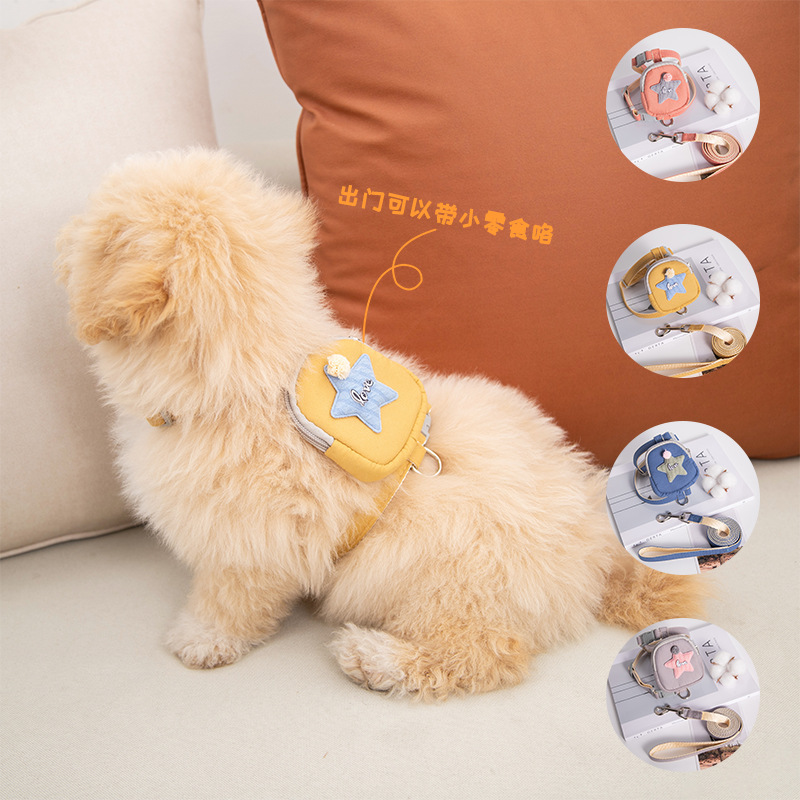 Tali kekang dada anjing, tali traksi ransel sendiri gaya rompi lucu anti pecah Teddy anjing kecil berjalan kucing tali anjing