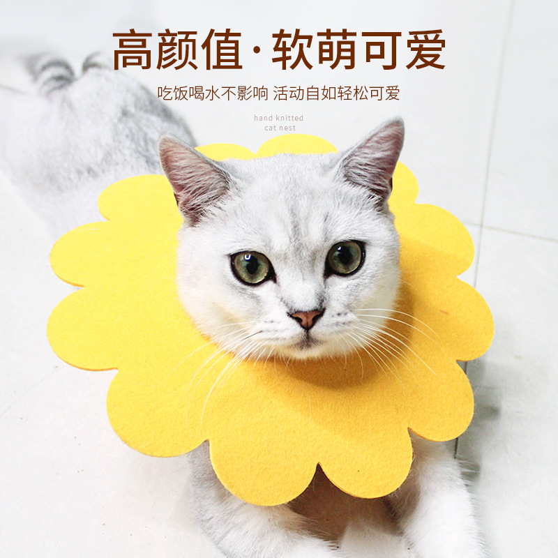 Model Baru Hewan Peliharaan Elizabeth Lingkaran Kucing Anti Gigitan Anti Menjilat Handuk Air Mulut Bunga Matahari Kain Bulu Kerah Kucing 6