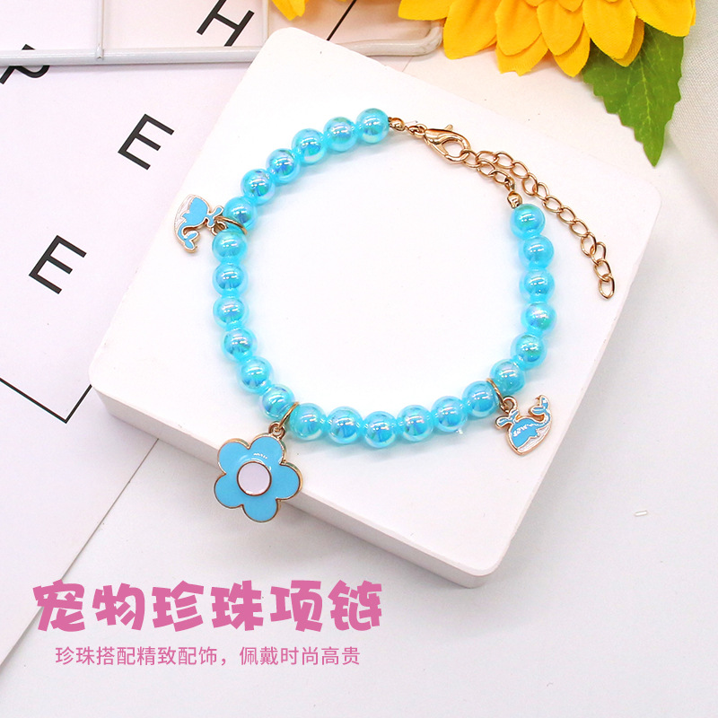 Kalung Kerah Hewan Peliharaan Amazon Lintas Batas Kalung Mutiara Kucing Anjing Kerah Mutiara Perhiasan Lucu Mutiara Model Mutiara