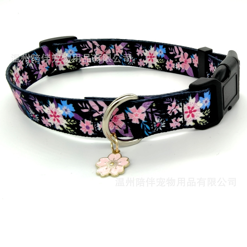 Kalung hewan peliharaan nilon, liontin bunga dengan cakar warna-warni-kerah kucing dan anak anjing yang dapat disesuaikan, set etnis
