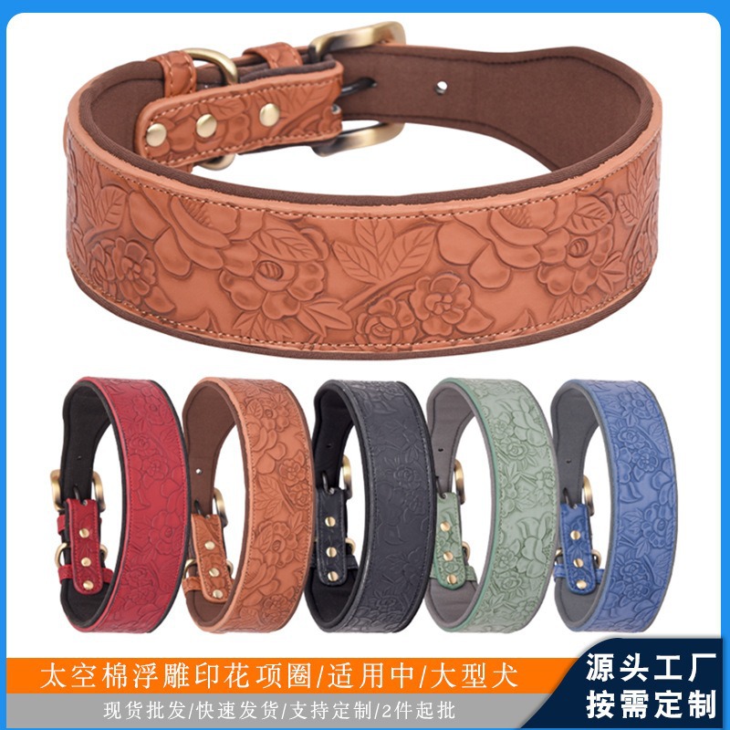 Kerah anjing lintas batas PU kulit timbul kerah hewan peliharaan besar dan menengah kapas ruang kerah anjing produsen grosir