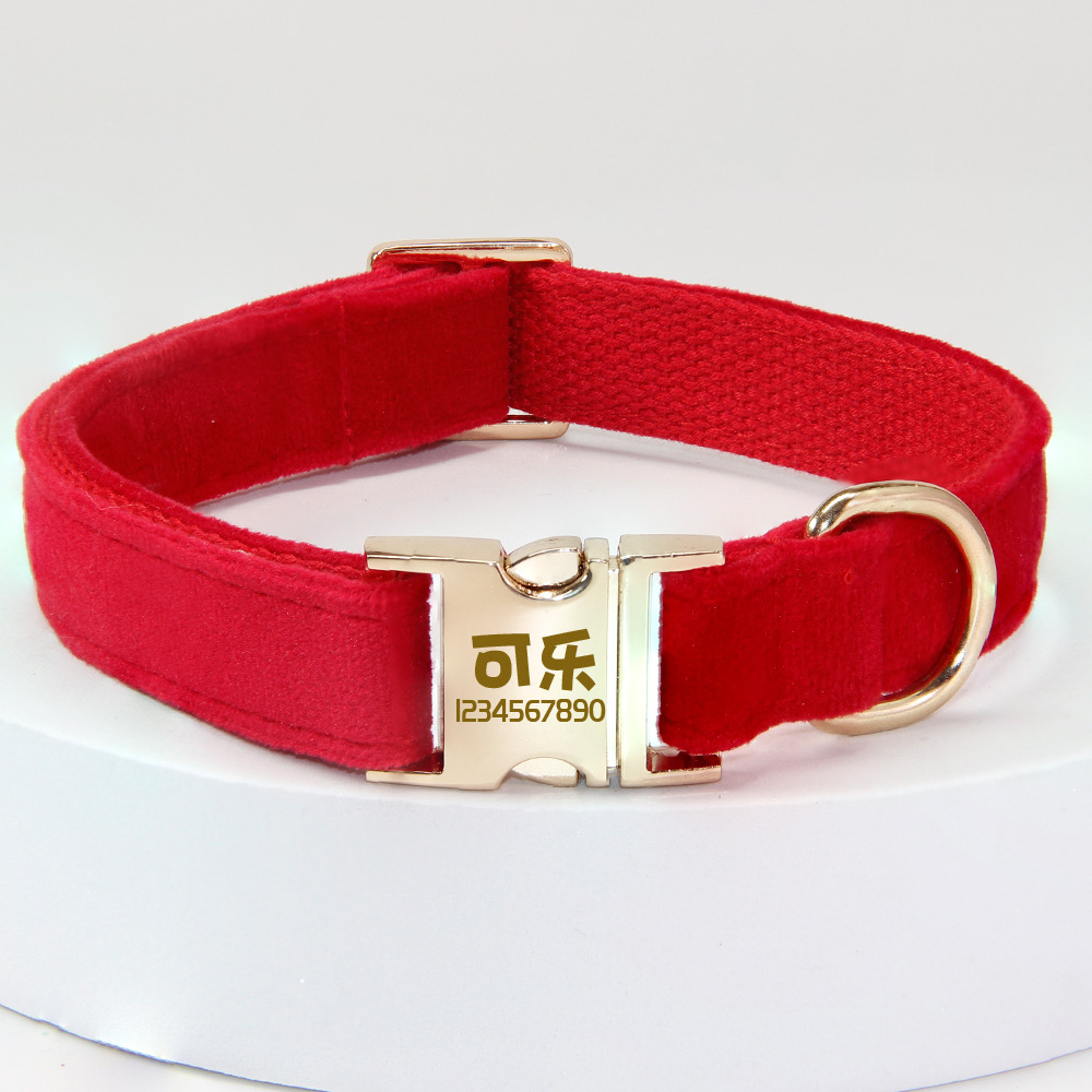 Kalung anjing peliharaan Kalung beludru baru dengan gesper logam yang dapat diukir Penjualan langsung perlengkapan hewan peliharaan