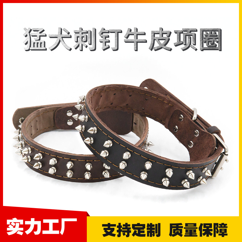 Paku Keling Kerah Hewan Peliharaan Kerah Anjing Kulit Asli Kerah Anjing Kerah Anjing Kerah Anjing Kerah Kulit Kepala Lapisan Kulit Sapi Anti Gigit