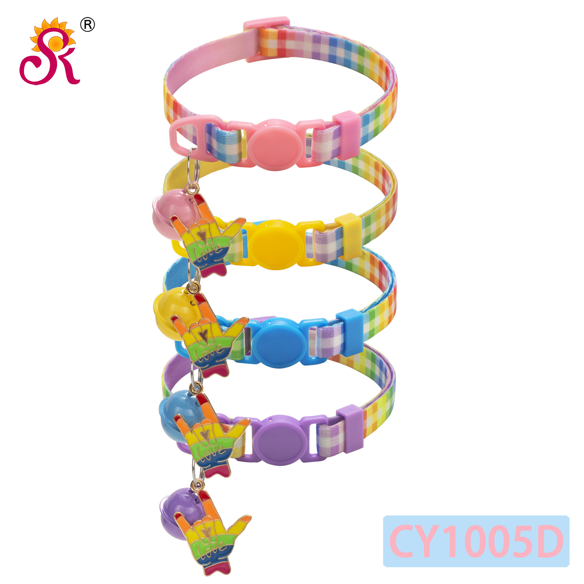 1.0彩虹格子吊牌印花宠物项圈安全扣项圈猫项圈大量现货工厂跨境