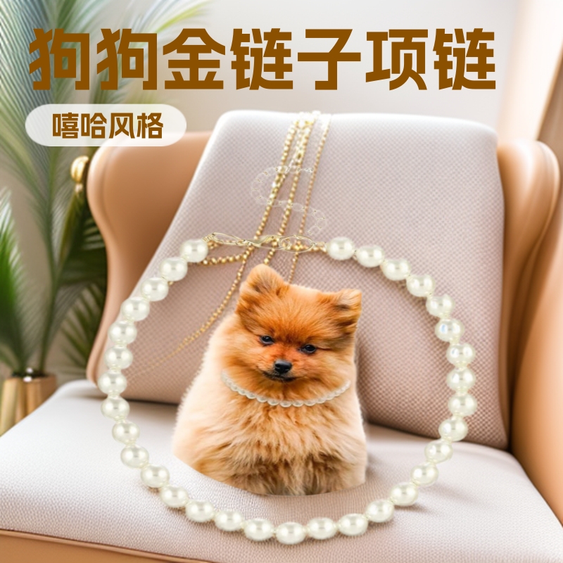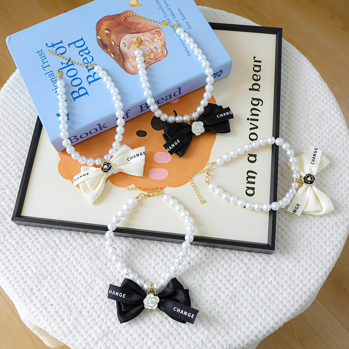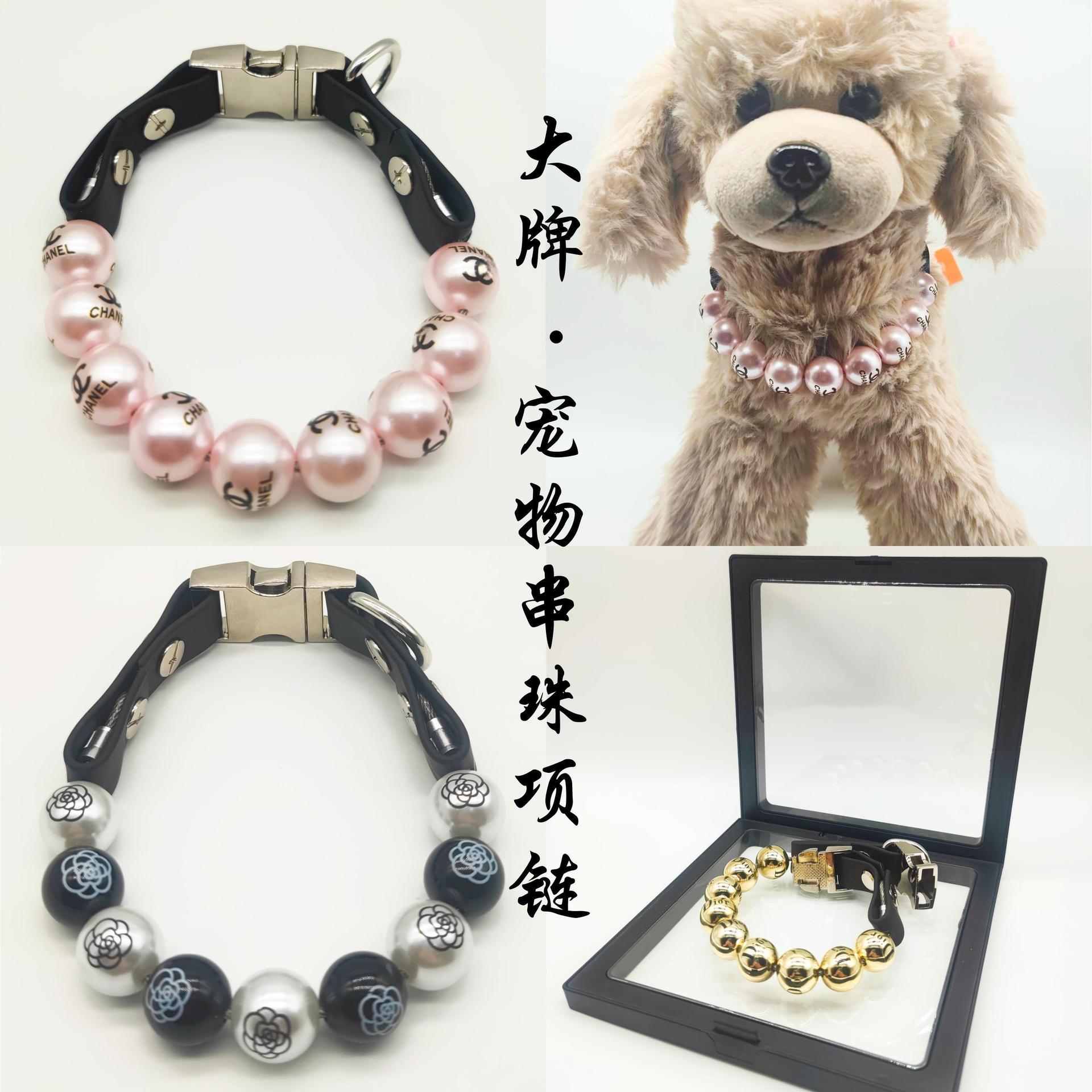 Merek Terkenal Merek Trendi Hewan Peliharaan Anjing Kucing Kalung Mutiara Kalung Ukuran Sedang Kecil Teddy Bixiong Kalung Universal Pendek