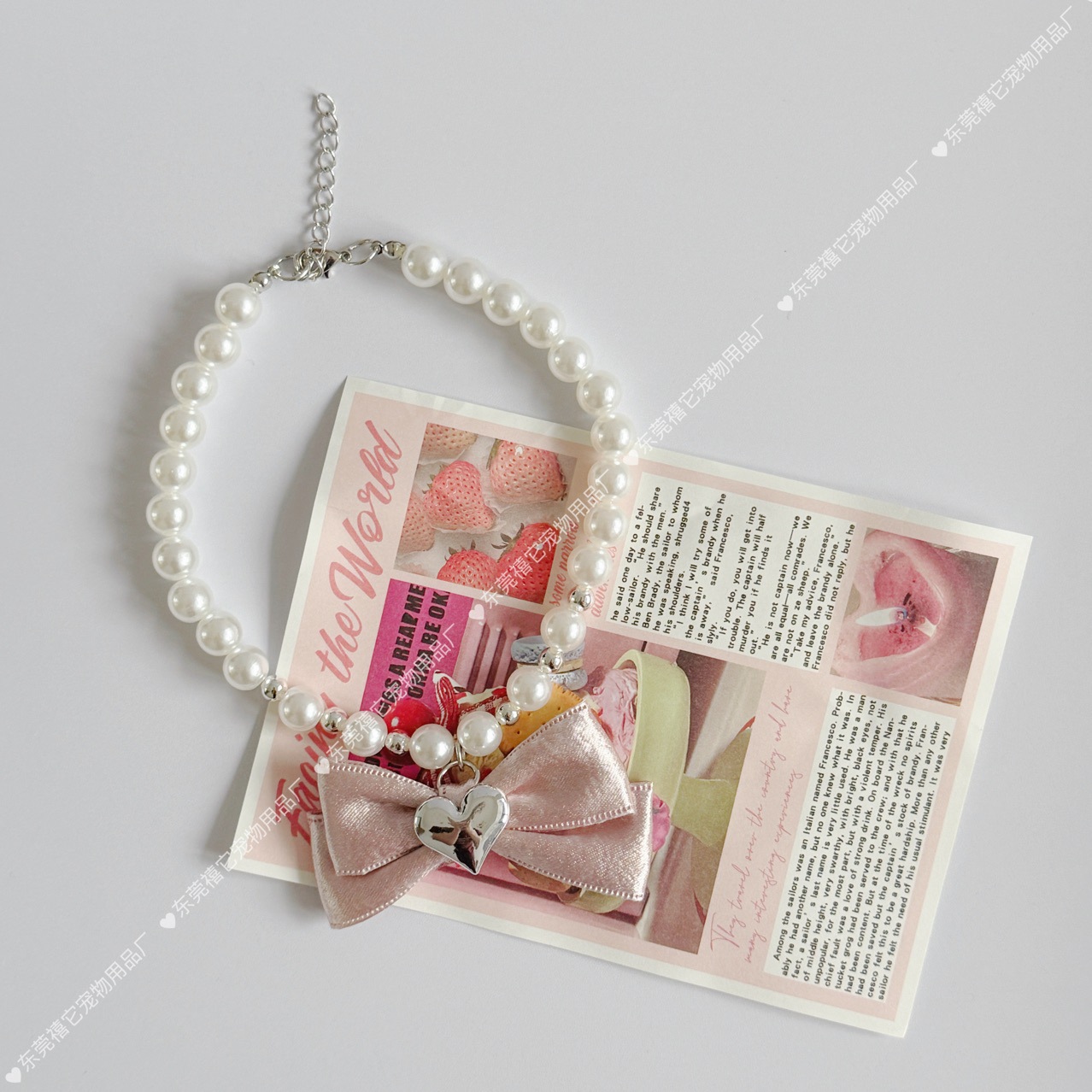 INS Hewan Peliharaan Kalung Mutiara Cinta Korea Merah Muda Pita Kupu-Kupu Gaya Putri Kucing Anjing Dekorasi Leher Anjing Aksesori Hewan Peliharaan Kecil