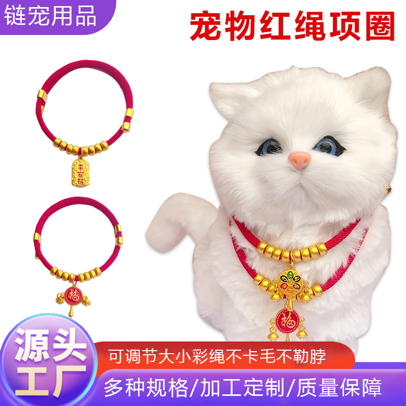 Perhiasan Hewan Peliharaan Model Baru Rajut Tangan Kunci Ping An Lonceng Kerah Tali Merah Kucing Liontin Leher Hewan Peliharaan Kalung