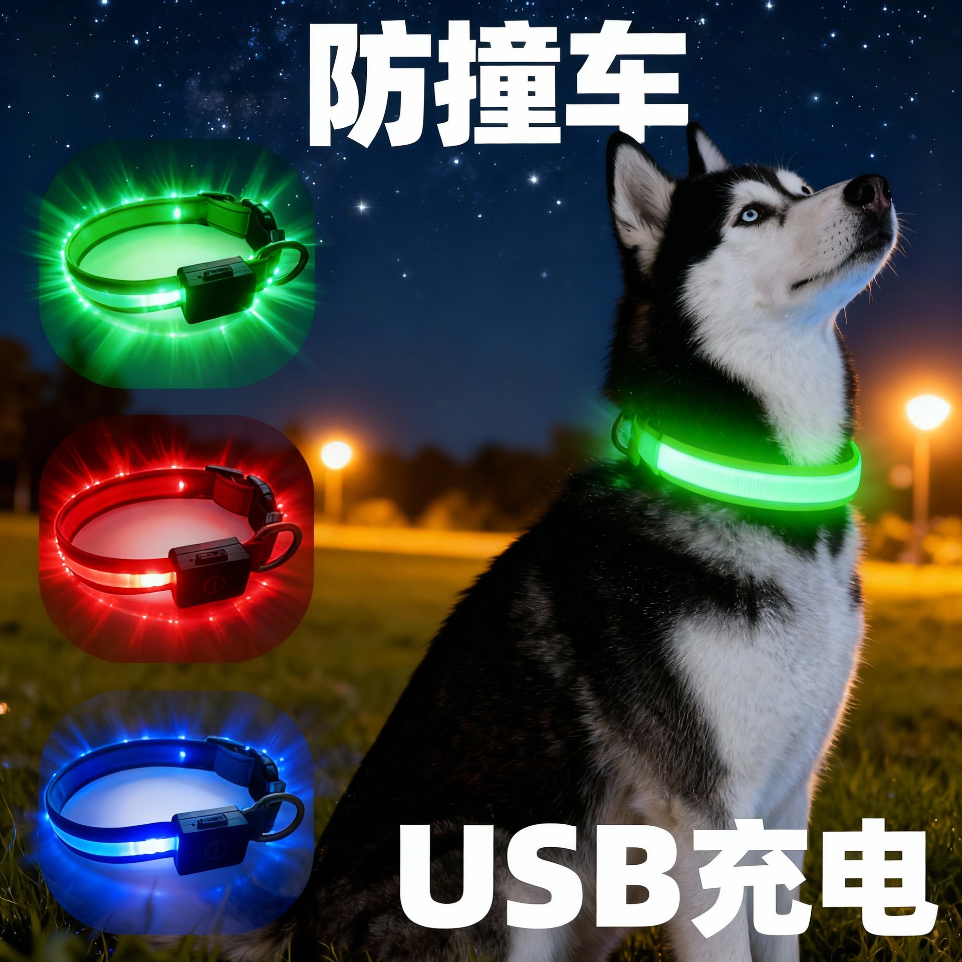 Kalung Anjing Hewan Peliharaan Bercahaya LED Kalung USB Model Pengisian Daya Husky Shepherd Golden Retriever Cincin Anjing Berkilau Malam Hari