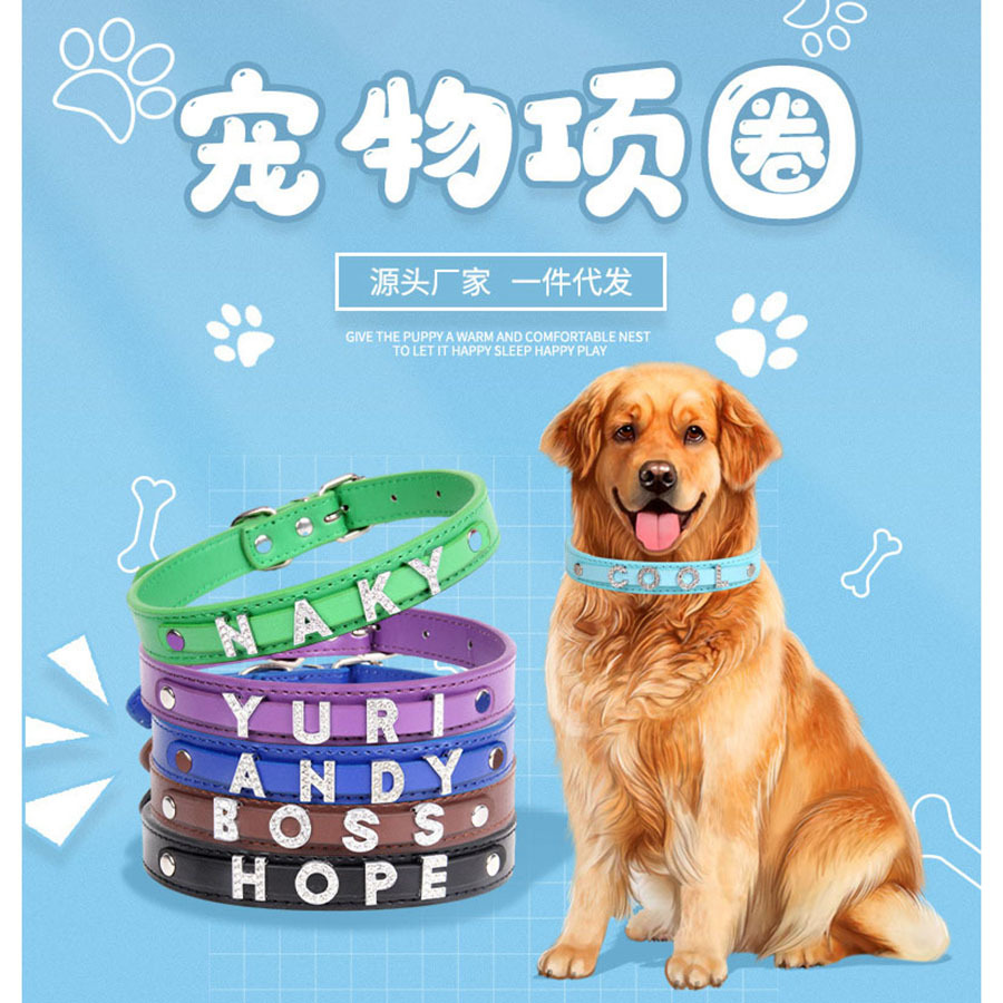 Perlengkapan Hewan Peliharaan DIY Penjualan Panas dengan Tali Traction Huruf Berlian Aksesoris Leher Leher Leher Kerah Anjing Kulit PU