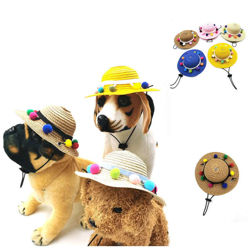 Diskon besar Amazon topi hewan peliharaan Natal topi jerami hewan peliharaan bola bulu warna-warni lucu kucing anjing