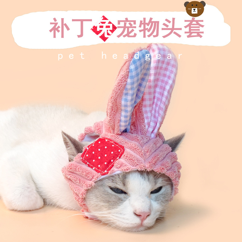Patch kelinci topi dekoratif hewan peliharaan tutup kepala kucing topi anjing perlengkapan hewan peliharaan lucu styling tutup kepala
