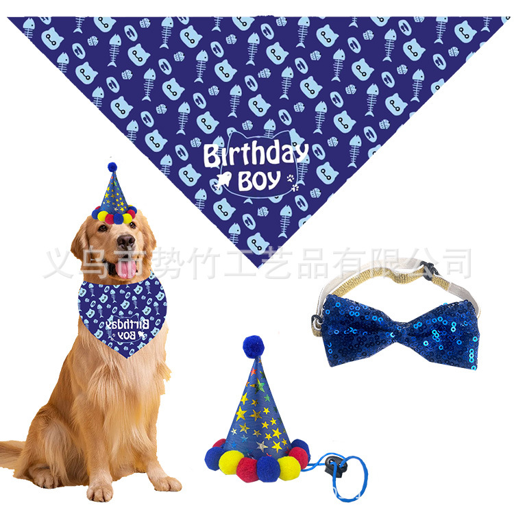 Topi ulang tahun kucing anjing peliharaan Cross-border topi pesta aksesori topi pesta ulang tahun perlengkapan handuk air liur