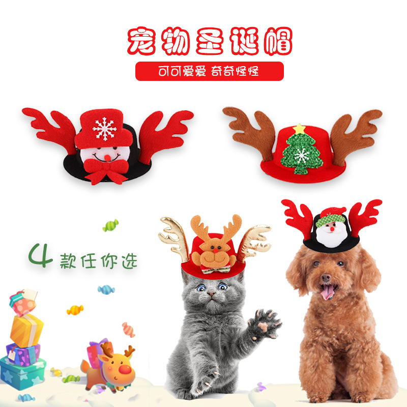 Aksesori rambut pesta perhiasan hewan peliharaan, topi wig kucing dan anjing lintas batas warna merah natal