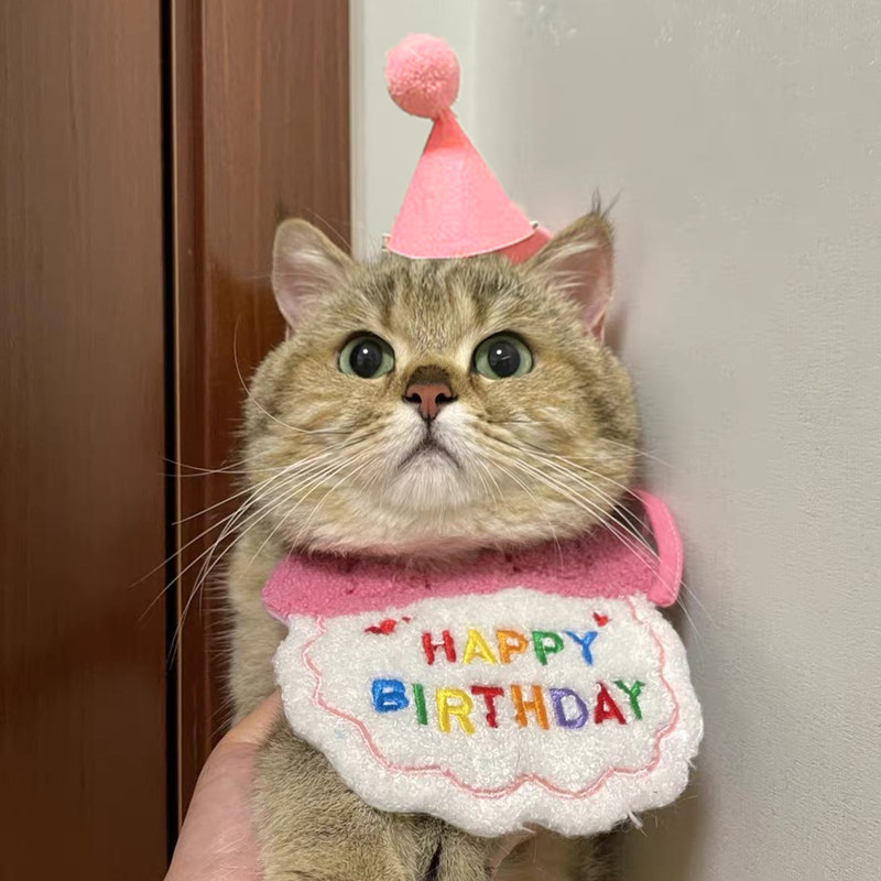 Topi ulang tahun kucing gaya Korea, bib bib bib setelan celemek makan hewan peliharaan, perhiasan dekorasi, fotografi, handuk segitiga anjing