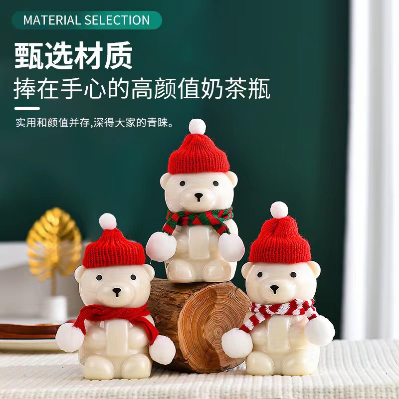 创意小熊奶茶瓶一次性外卖奶茶瓶加厚pet塑料瓶抱熊果汁饮料瓶子
