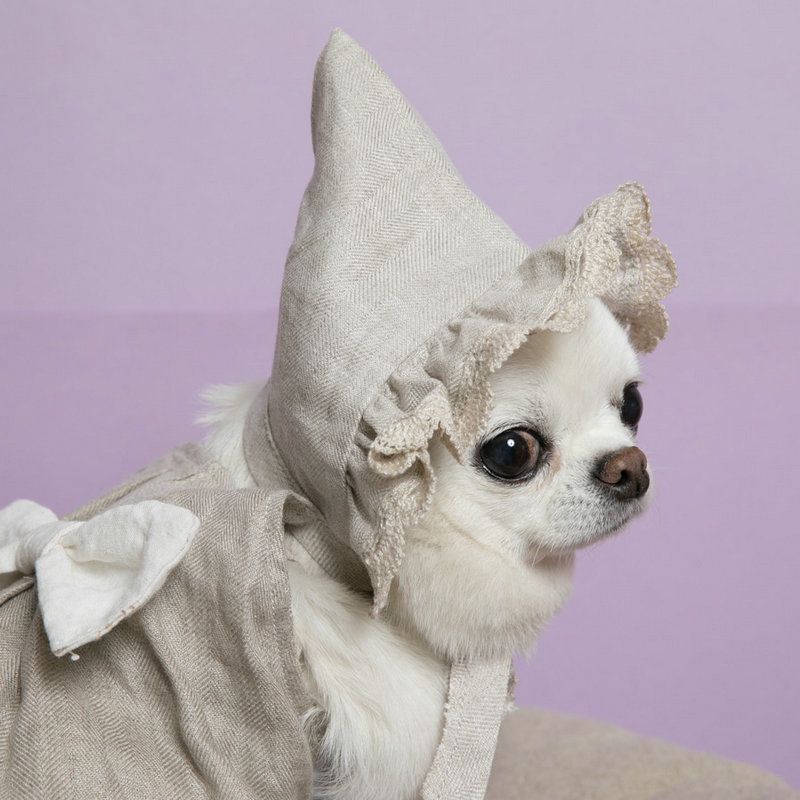 Topi anjing dasi Linen musim semi dan musim gugur topi piknik hewan peliharaan bepergian anjing kecil topi dekorasi