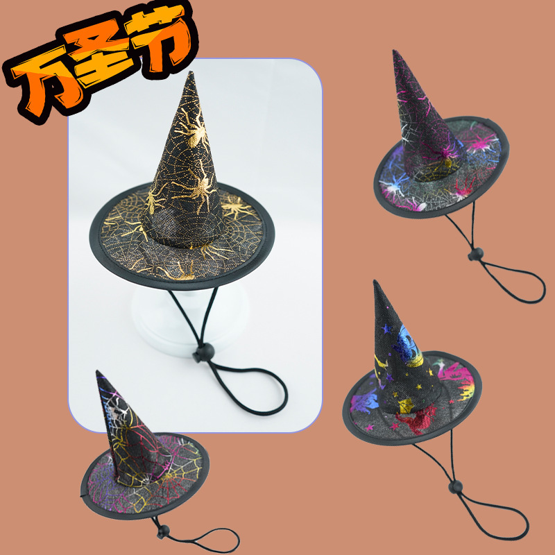 Topi Mini untuk pesta Halloween, topi anjing penyihir, topi lancip labu kucing dengan tali elastis