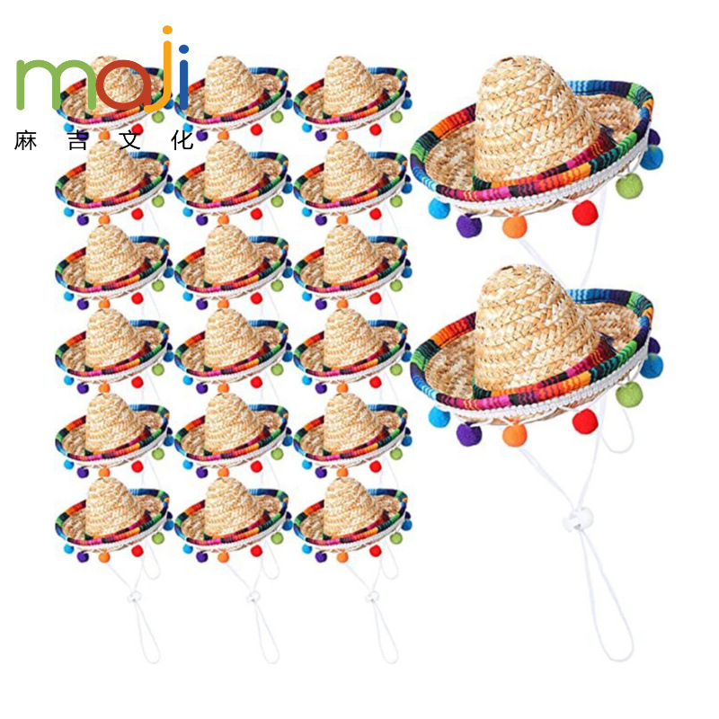 Topi jerami Meksiko aksesoris pakaian anjing perlengkapan pesta karnaval cocok untuk hewan peliharaan anak-anak dan dekorasi boneka