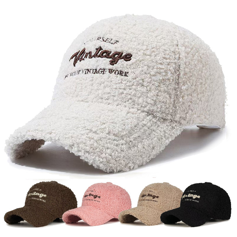Topi bisbol wanita beludru teddy hangat, topi pelindung matahari perjalanan kecil semua Cocok musim gugur dan musim dingin