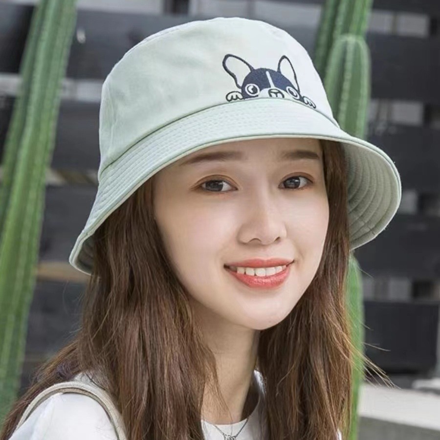 [Pilihan] Topi Lintas Batas Produk Baru Wanita Topi Nelayan Anak Anjing Bordir Topi Baskom Mudah Dipadu Padan Topi Tabir Surya Manis dan Imut