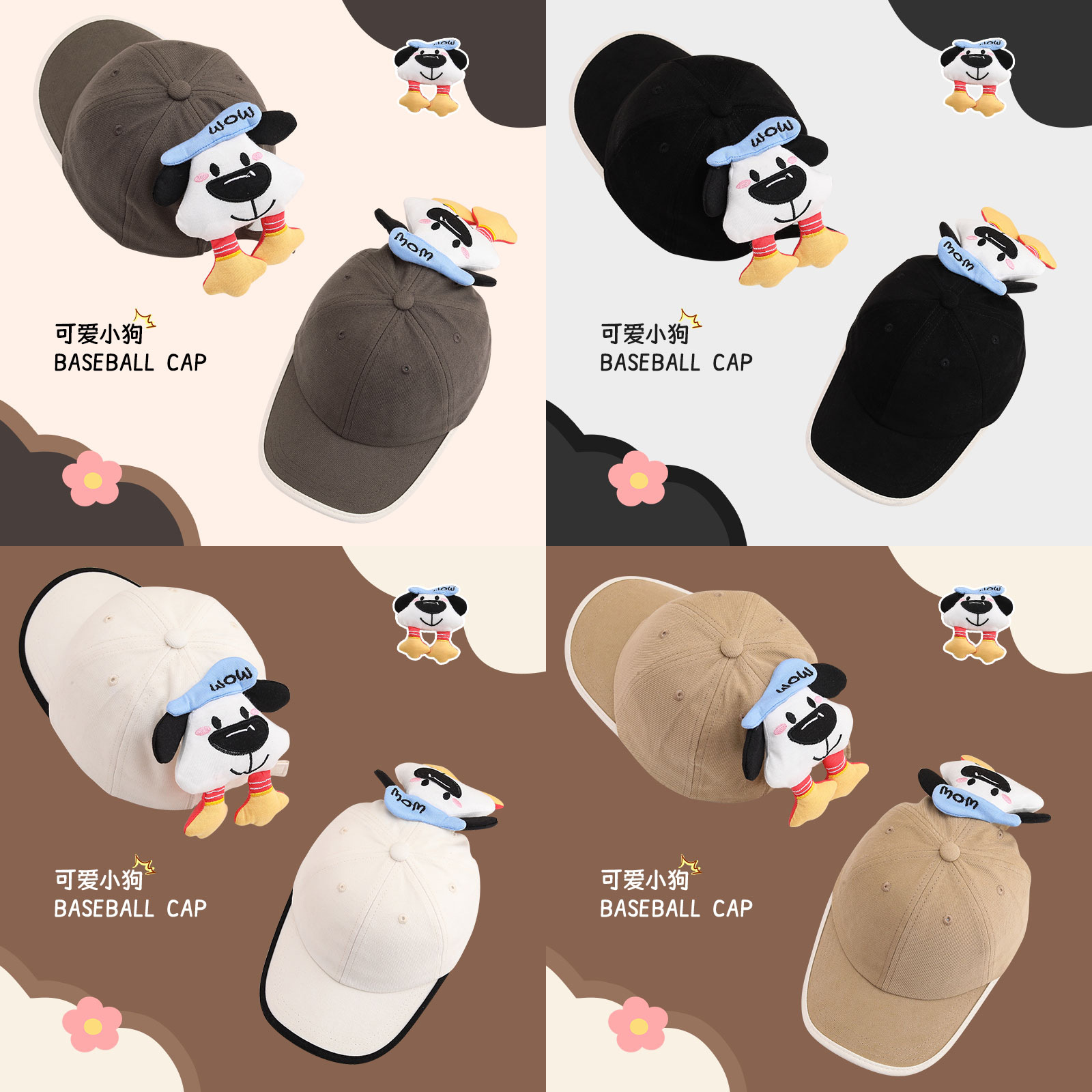可爱立体卡通小狗鸭舌帽子儿童秋季出游百搭遮阳防晒鸭舌帽子可爱