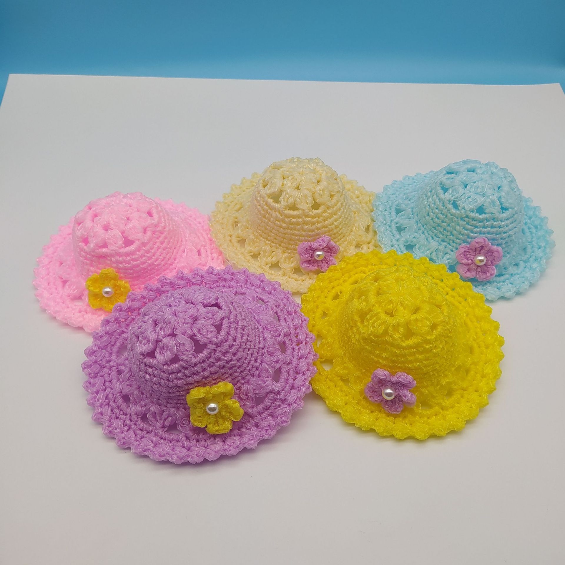 Topi hewan peliharaan pasokan langsung pabrik perhiasan anjing kucing crochet buatan tangan topi hewan peliharaan perhiasan bunga buatan tangan