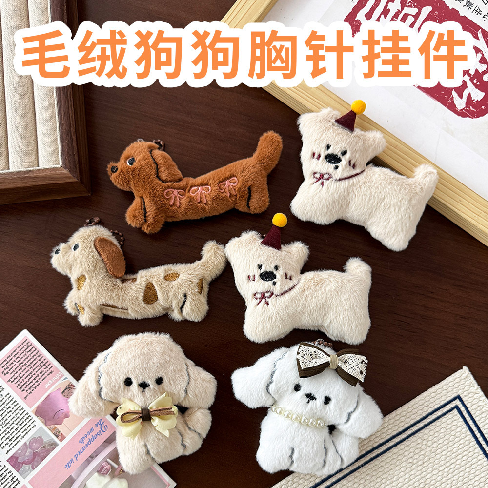 卡通毛绒公仔小狗挂件胸针可爱玩偶装饰挂坠少女心钥匙扣背包公仔