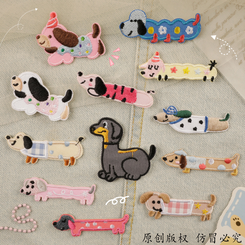 绣花标服装辅料补丁卡通可爱香肠狗鞋帽包配饰原创自粘补丁贴布贴