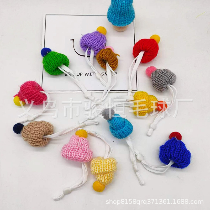 Produsen di stok topi rajut kecil DIY Aksesori mainan boneka topi wol pita karet topi kecil hewan peliharaan