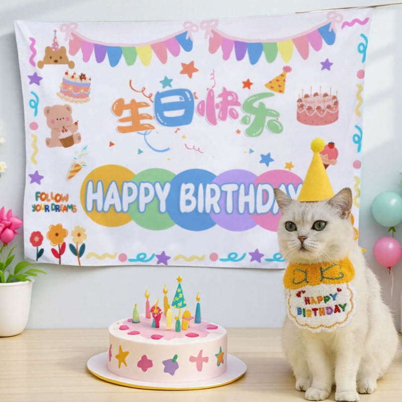♔Alat Peraga Ulang Tahun Hewan Peliharaan Topi Pasangan Anjing Topi Air Bot Kucing Set Perhiasan Ulang Tahun Pakaian Berkilau Merah Muda Hot Stamping Emas Minggu