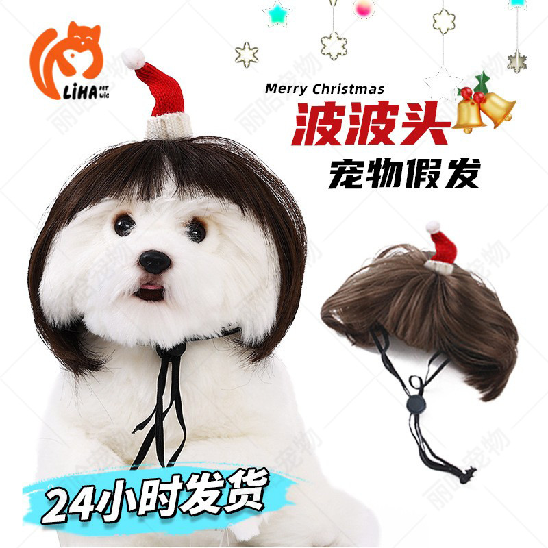 Rambut palsu kucing dan anjing universal, aksesori rambut hewan peliharaan populer gaun pesta Natal liburan gelombang besar rambut keriting