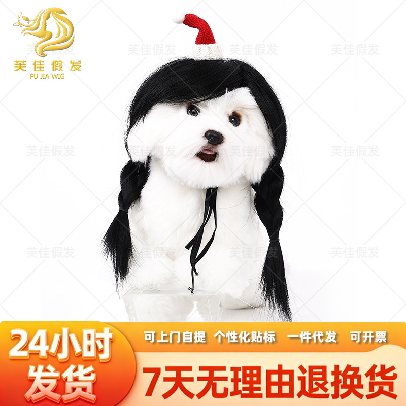 Wig anjing peliharaan baru persediaan hewan peliharaan lintas batas perhiasan hewan peliharaan Halloween Natal ekor kuda ganda
