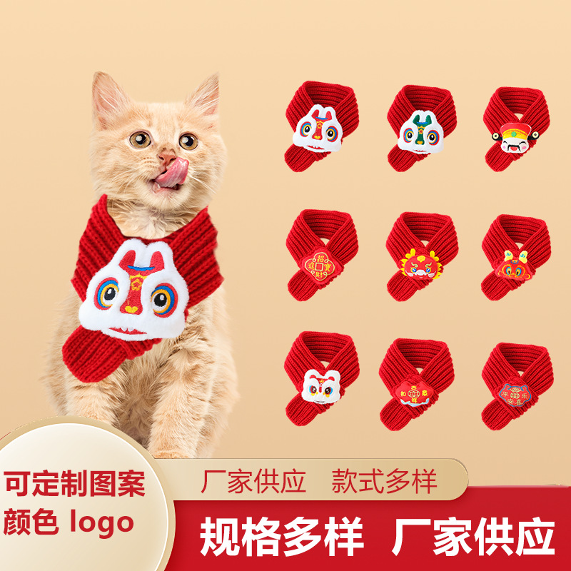 Syal Tahun Baru untuk hewan peliharaan syal festival Musim Semi Tahun Baru syal kucing anjing perlengkapan Tahun Baru rajutan hangat aman dekorasi koi