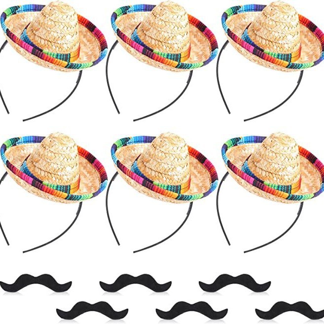 Topi pesta bertepi lebar Mini setelan janggut palsu dekorasi Karnaval Meksiko pita Mini pita lebar Meksiko
